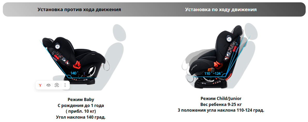 Установка по ходу движения (режим toddler):