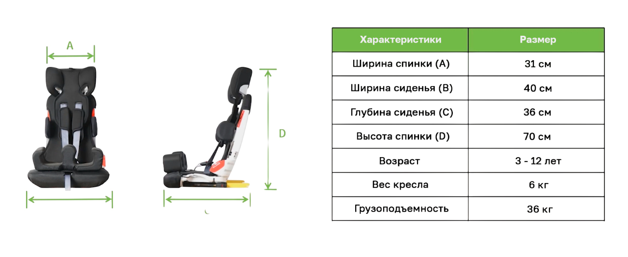 Высота подголовника регулируется по мере роста пользователя.