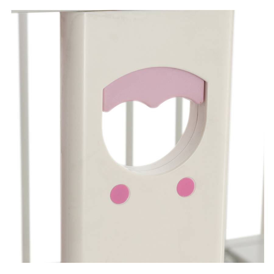 Конструкция: 2 опускающихся ограждения с трубой-основанием (30×30 мм), 16 круглыми стойками (Ø 16 мм), 2 профильными стойками (30×42 мм), поручнями, газовыми пружинами и механизмом фиксации в 3 положениях.