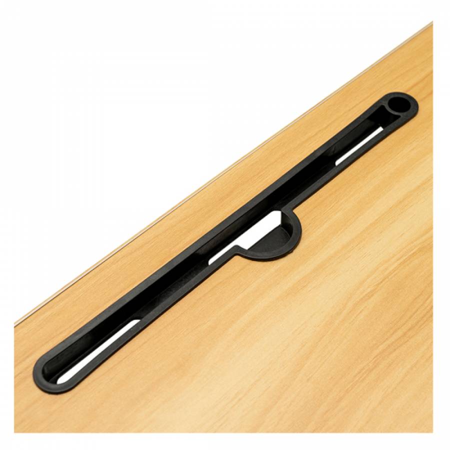 Столешница выполнена из дерева и имеет гибкий пластиковый обод для предотвращения падения предметов.