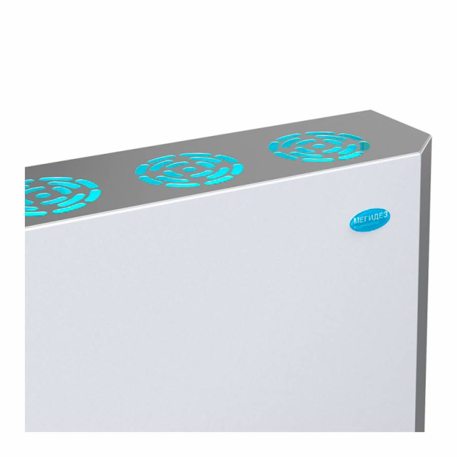 Обеззараживание воздушного потока происходит в процессе его принудительной циркуляции через металлический корпус при помощи вентилятора.