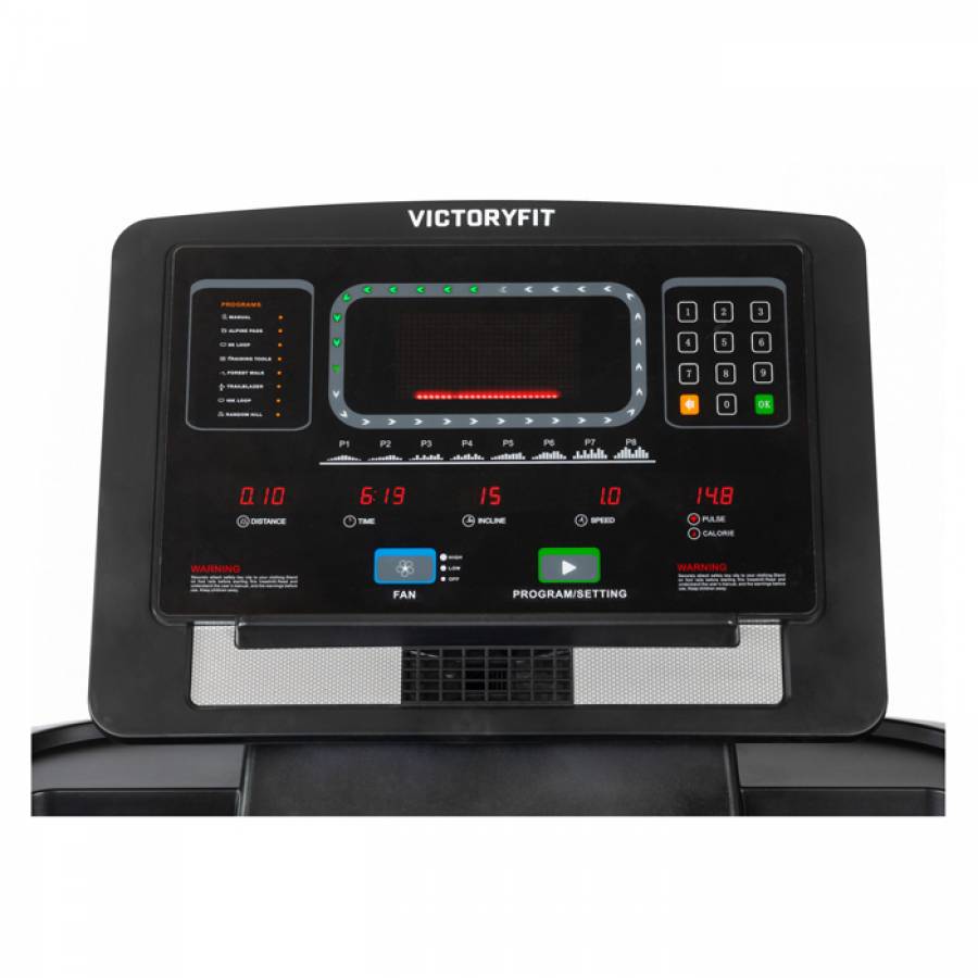 Беговая дорожка VictoryFit GYM-8009 – это высококлассное оборудование с мощным двигателем 7.0 л.с., широким беговым полотном и расширенным функционалом для эффективных кардионагрузок.