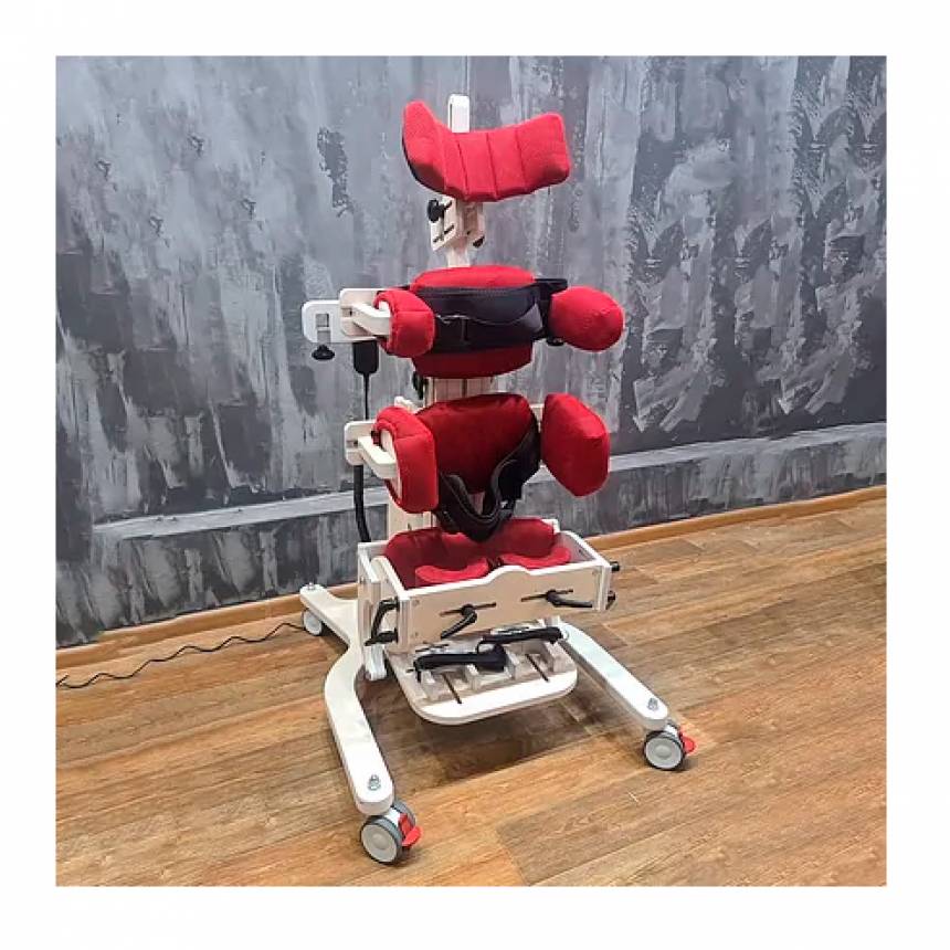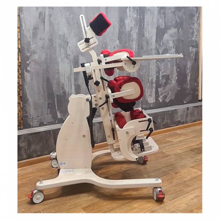 Вертикализатор МИШКА предназначен для реабилитации детей, ростом от 80 до 130 см и массой до 50 кг, с нарушением функций опорно-двигательного аппарата и патологическими изменениями нервной системы врожденного и приобретенного характера для фиксации их в вертикальном, наклонном или горизонтальном положении.